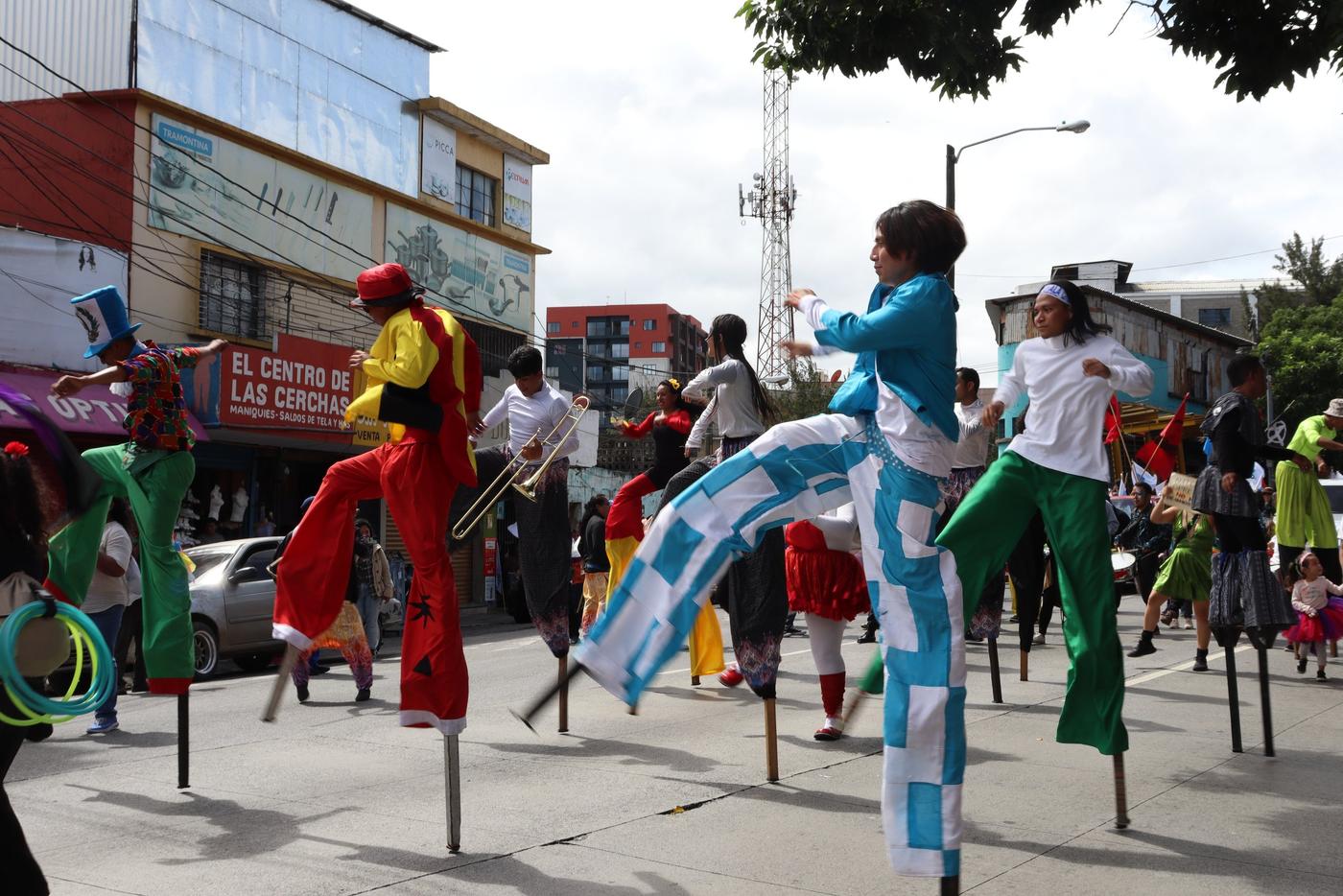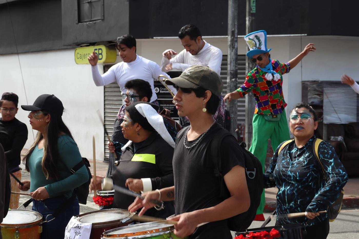 Ana Juárez, del colectivo Caja Lúdica, compartió su perspectiva en la manifestación artística de hoy. “Tras los Acuerdos de Paz, las calles se han convertido en un espacio donde el arte se manifiesta como una expresión de resistencia, aportando un componente alegre y artístico a la causa”, expresó.