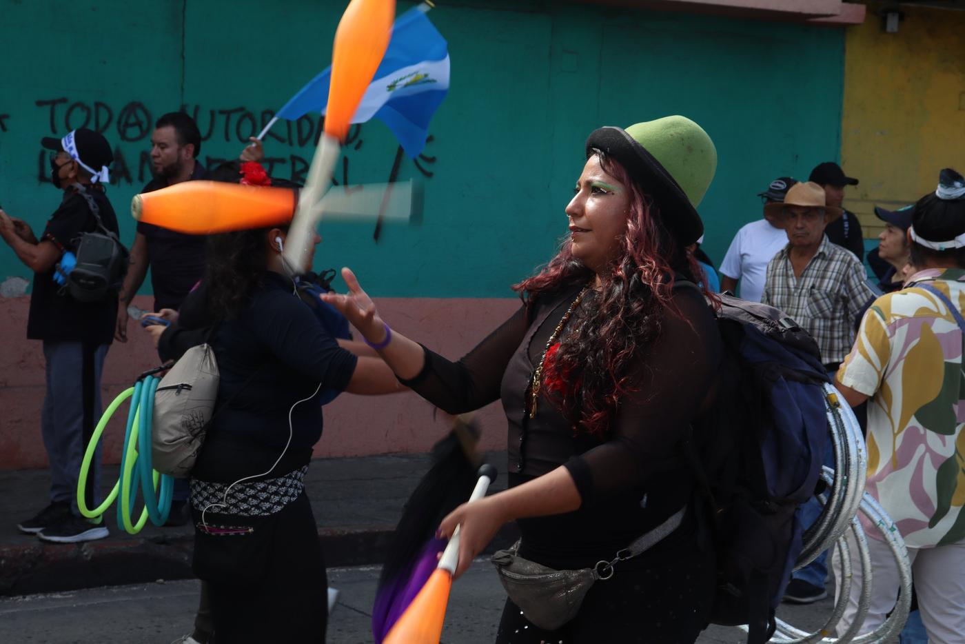 “Queremos una Guatemala más justa, solidaria y equitativa, en la búsqueda incansable de la justicia social, explicó Raúl de la colectiva de artistas durante la marcha de este bloque, que comenzó en el Trébol, en la zona 8 capitalina, y enfiló al Centro Histórico de la ciudad.
