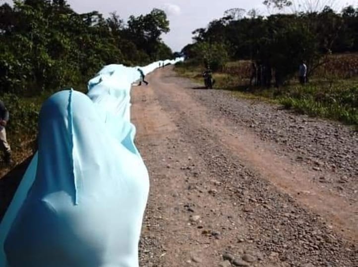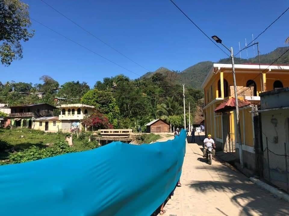 <Ríos de gente > proyecto de la artista Regina Galindo junto a Abelino Chub Caal y producida por Maíz de Vida “Rememoró los lugares donde alguna vez pasó un río que fue desviado o contaminado por la industria extractiva que despoja de sus recursos a los pueblos originarios.”