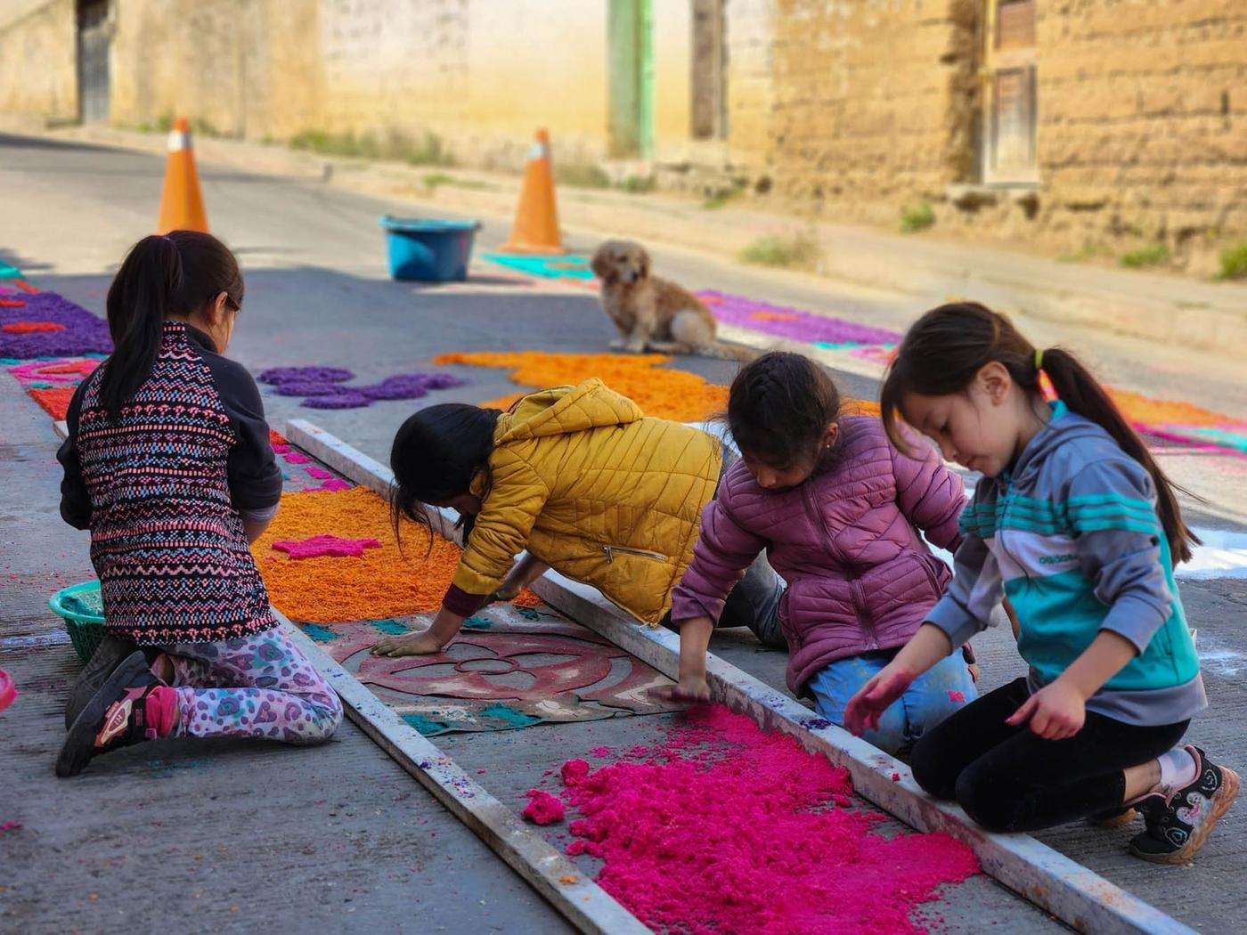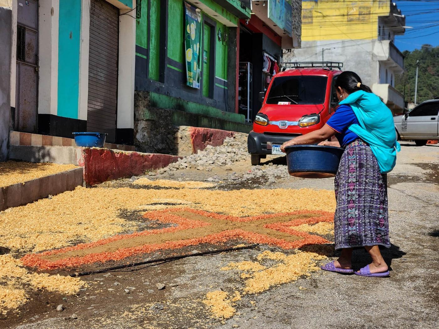 Mientas Mónica Aguilón del Centro Cultural resalta la labor de varios días con los que se vienen preparando para la celebración de la semana mayor en Comitancillo y el espíritu de mantener las costumbres y tradiciones, con el involucramiento de los niños y especialmente las madres, quienes madrugan para realizar las alfombras.