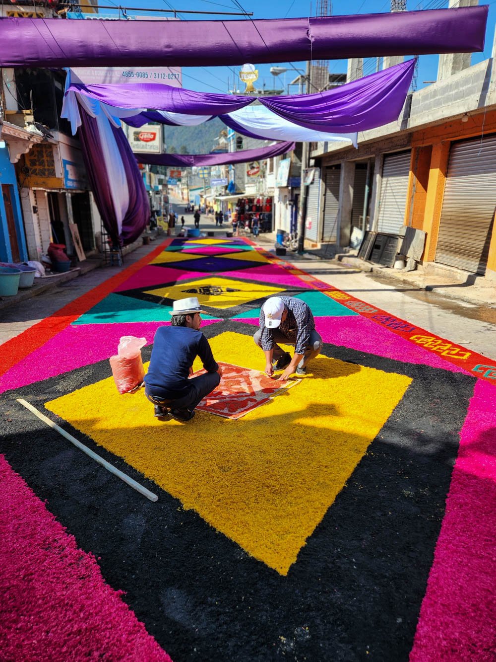Las familias continúan manteniendo la tradición de elaborar alfombras para el paso procesional en semana santa, una tradición que continua de generación en generación en Comitancillo.