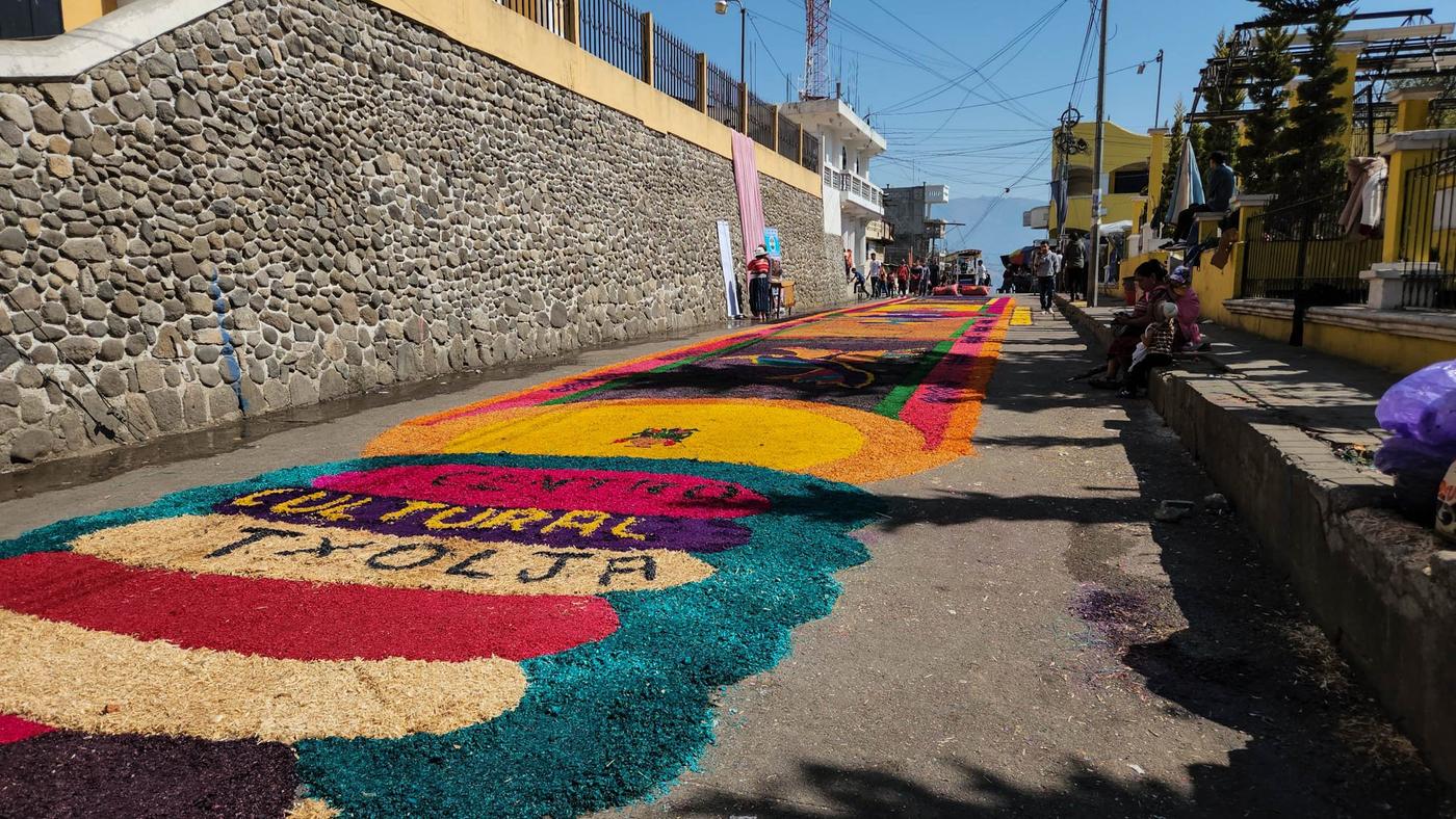El padre Delfino López indica que durante la mañana del viernes santo (29 de marzo), se realizará el vía crucis, las familias ofrecen su devoción en los diferentes materiales que contiene cada alfombra, también por la al atardecer se representará la pasión de Cristo.