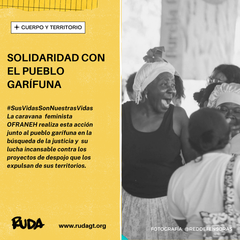 En el comunicado se menciona “Nosotras, feministas y luchadoras diversas que nos convocamos en la Red Nacional de Defensoras nos sentimos no sólo reconocidas en las luchas de la organización sino parte de sus profundas búsquedas y victorias; es por esa razón que hoy nos llamamos a movernos al territorio rebelde del pueblo garífuna, para estar y conversar; aprender entre todas, sentir la brisa del mar y la vida gobernando nuestros días y sueños.”