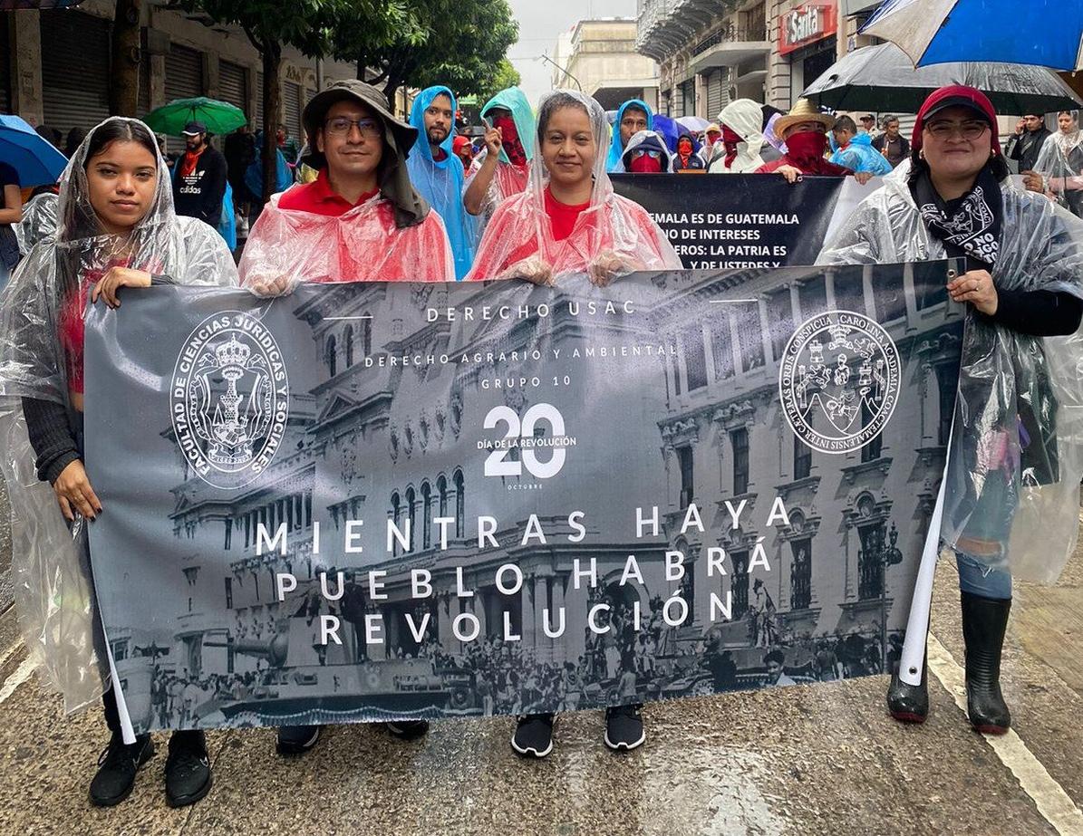 El 20 de octubre, miles de personas se unieron a marchas, manifestaciones y plantones en el país. Esto sucede en el aniversario número 79 de la Revolución de Octubre de 1944, cuando se cumplieron 19 días de Paro Nacional Indefinido convocado por autoridades indígenas y ancestrales del país. En la ciudad capital, las y los estudiantes de la Universidad de San Carlos de Guatemala (USAC) se sumaron y tomaron las calles.
