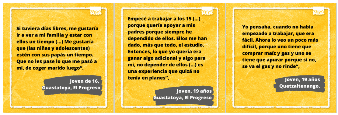 La investigación realizada para mostrar la realidad en los centros urbanos de las cabeceras departamentales, reveló que niñas, adolescentes y mujeres que trabajan en las 292 tortillerías seleccionadas en Huehuetenango, Quetzaltenango, Jalapa, El Progreso y la Ciudad de Guatemala, son explotadas, limitadas en sus derechos y libertades por sus familiares o personas particulares.