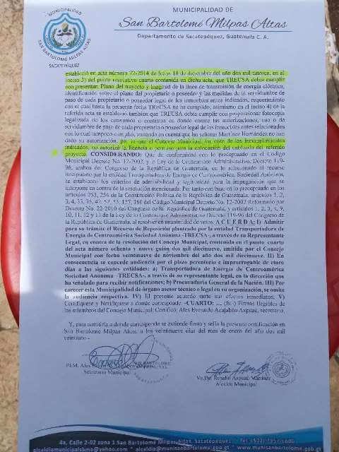 Sin embargo, esto no ha evitado que Trecsa continúe con la instalación de torres en diversos municipios y departamentos del país, como en Sacatepéquez, donde según las comunidades, no se le han otorgado licencias de construcción por no cumplir los requisitos.