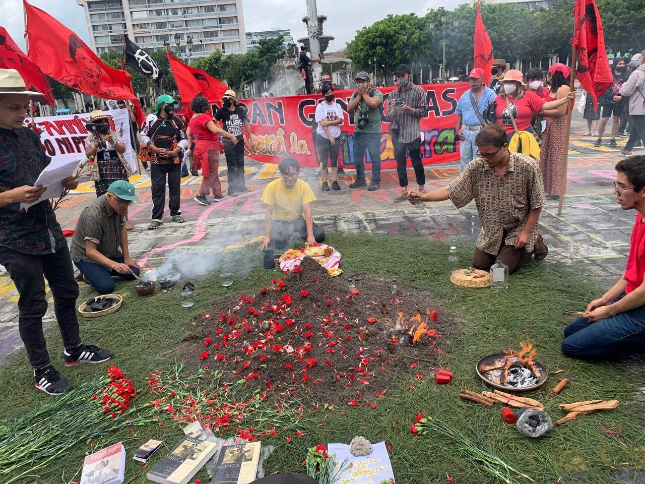 Finalmente, la marcha se detuvo en la Plaza de las Niñas. Allí, la Organización de Locas Centroamericanas y del Caribe -ODELCA- realizaron un acto de memoria mediante flores, incienso, música, comida y poesía. Se recordó el impacto de la desaparición forzada y el asesinato, el luto colectivo que estos hechos conllevan y la memoria como talismán sagrado.