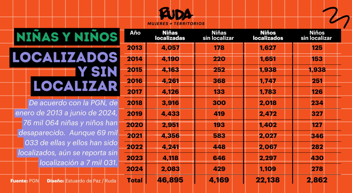 El caso de esta niña es parte de los 76 mil 064 niños, niñas y adolescentes (NNA) que fueron reportados como desaparecidos por medio de la Unidad Operativa del Sistema de Alerta Alba-Keneth, entre enero de 2013 a junio de 2024.
