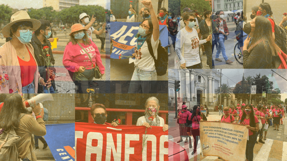 La mañana del 20 de octubre, como cada año, estuvo marcada por actos de conmemoración y manifestación en el Centro Histórico de la Ciudad de Guatemala. Agrupaciones de sobrevivientes de la guerra, organizaciones estudiantiles, sindicatos, partidos políticos y colectivos sociales recorrieron las calles para posicionar los logros de la Revolución de Octubre y para conmemorar el asesinato de Oliverio Castañeda de León, quien fue secretario general de la Asociación de Estudiantes Universitarios (AEU) en 1978. Las mujeres participaron activamente en estas jornadas, desde los sindicatos y las agrupaciones estudiantiles posicionaron la reivindicación del trabajo doméstico y del papel de las mujeres en el sostenimiento de estas organizaciones.