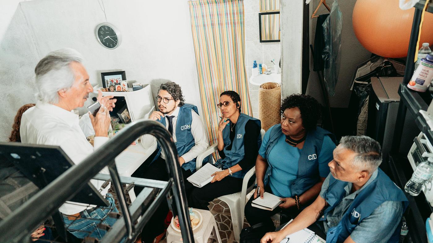 Visita de los delegados de la CIDH al fundador del desaparecido medio de comunicación escrito elPeriódico, Jose Rubén Zamora, quien se encuentra en prisión en el cuartel de Mariscal Zavala. En julio de 2023 la CIDH lo benefició con medidas cautelares. Foto: CIDH