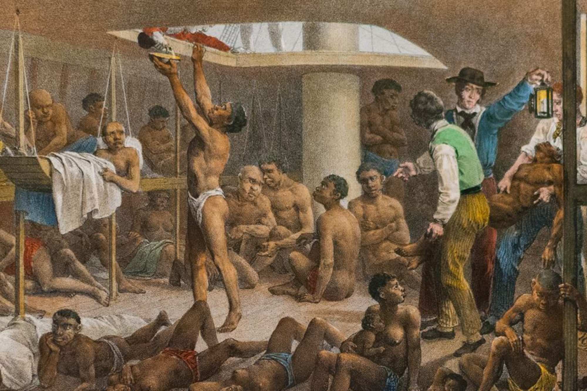 Obra “Negros en la bodega de un navío”, del pintor alemán Johann Moritz Rugendas, de 1830, que ilustró cómo eran trasladados las y los esclavos de África a América. Foto: Wikipedia