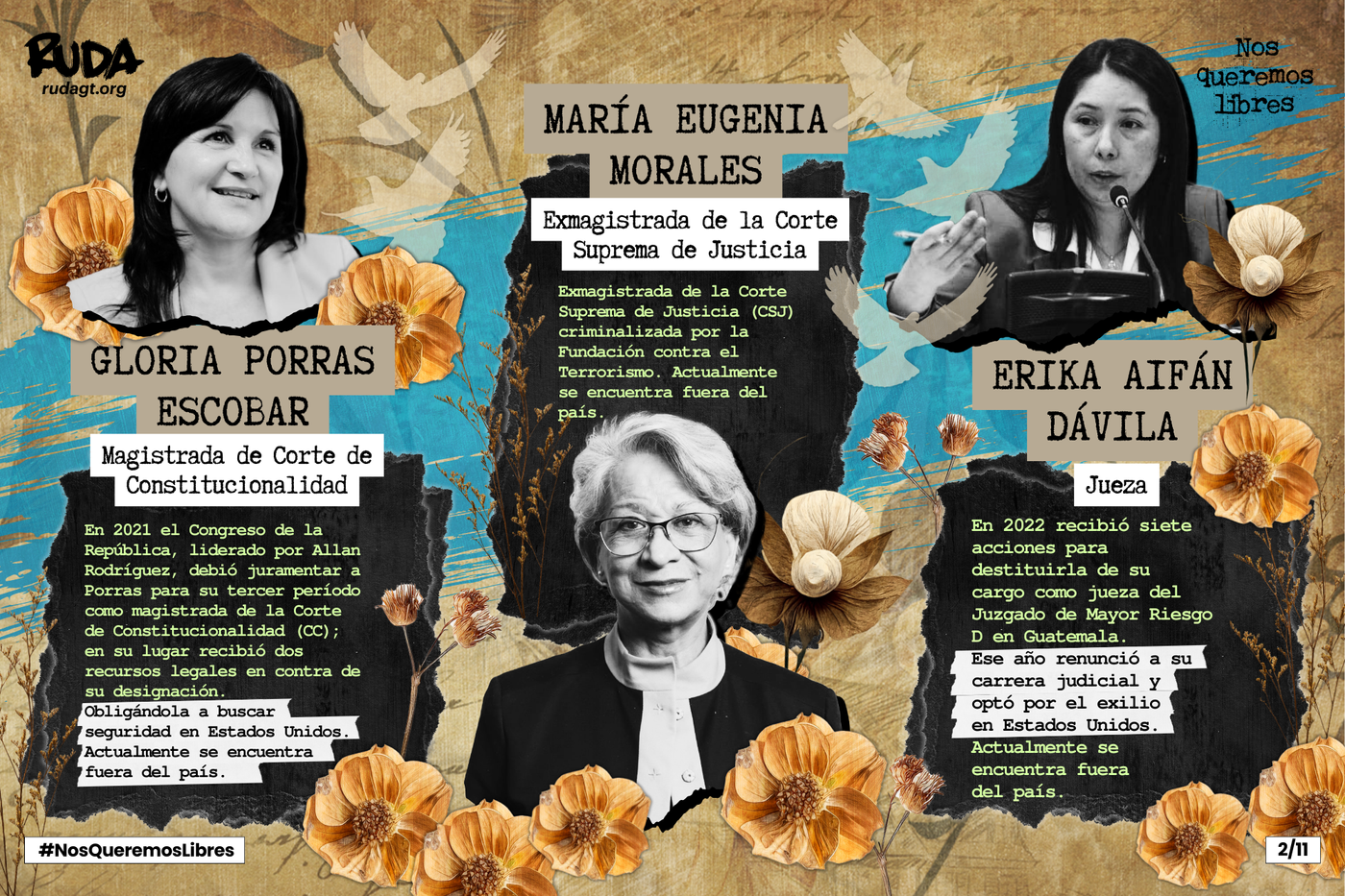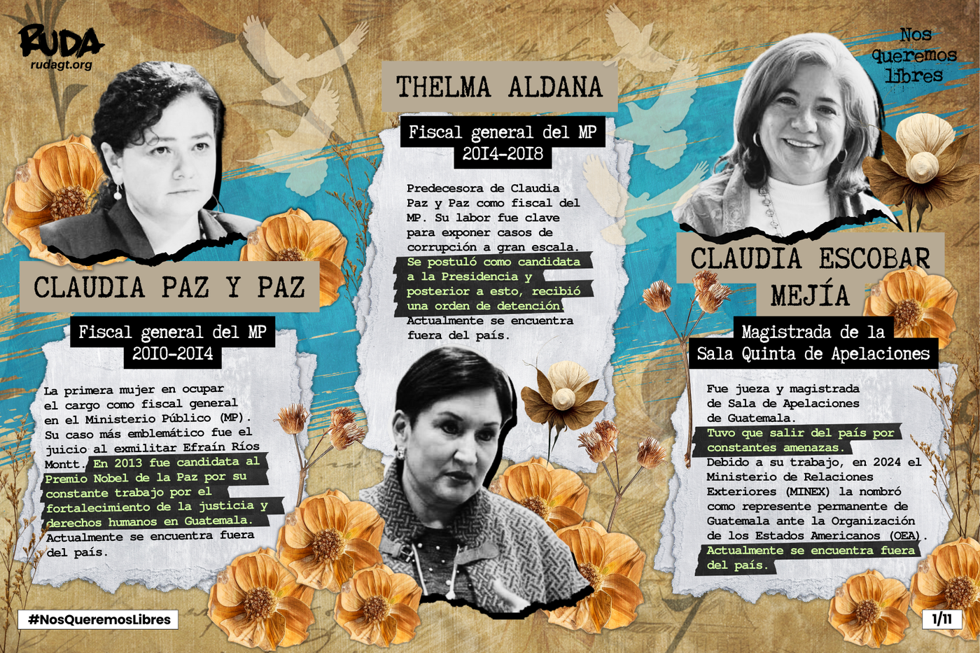 En la lista de perseguidos por jueces como Castellanos, por el MP y la Fundación contra el Terrorismo hay al menos 31 mujeres, entre ellas Claudia Paz y Paz y Thelma Aldana, las dos exfiscales generales y jefas del Ministerio Público que ayudaron a transformar la institución y emprendieron investigaciones de gran calado para desmantelar redes de narcotráfico y corrupción política, así como para llevar ante la justicia a los autores de crímenes de lesa humanidad y genocidio cometidos durante el conflicto armado interno.