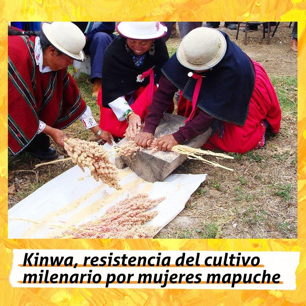 Kinwa es una planta originaria de Abya Yala, sus raíces se encuentra en Chile al cuidado y resguardo del pueblo Mapuche. Hay registros de cómo a la mujeres mapuche se le prohibió la cosecha de este alimento porque se consideraba pagano, sinónimo de pobreza, y hasta se les acusaba de ser incivilizadas.