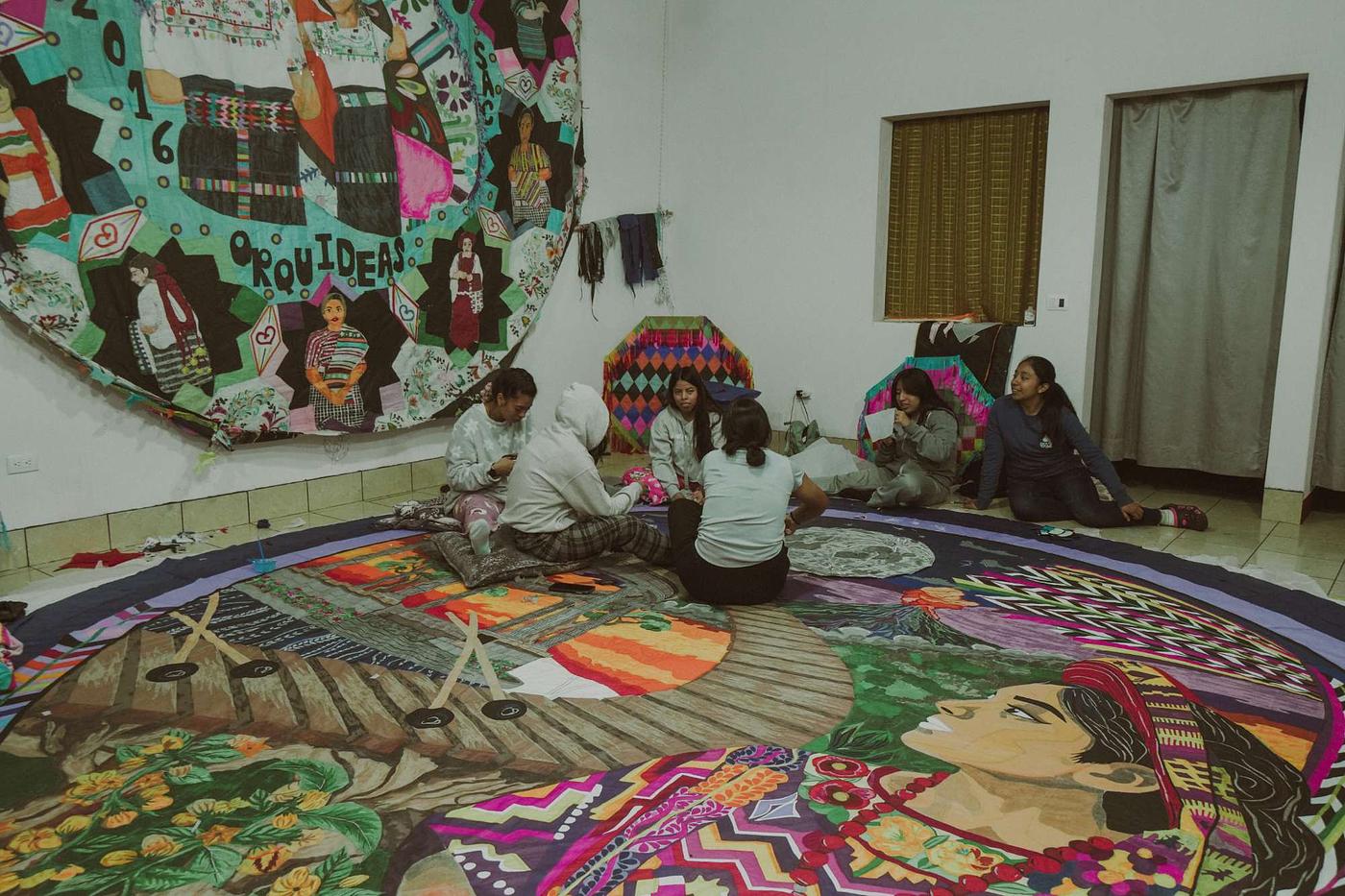 Mientras las horas avanzan, las Orquídeas bailan entre bromas, recortan figuras, pegan letras, inventan un cielo de papel y la Luna de Xelajú. El arte y la comunidad se funden en un mismo gesto. Afuera, son las tres de la madrugada ya roza los tejados.