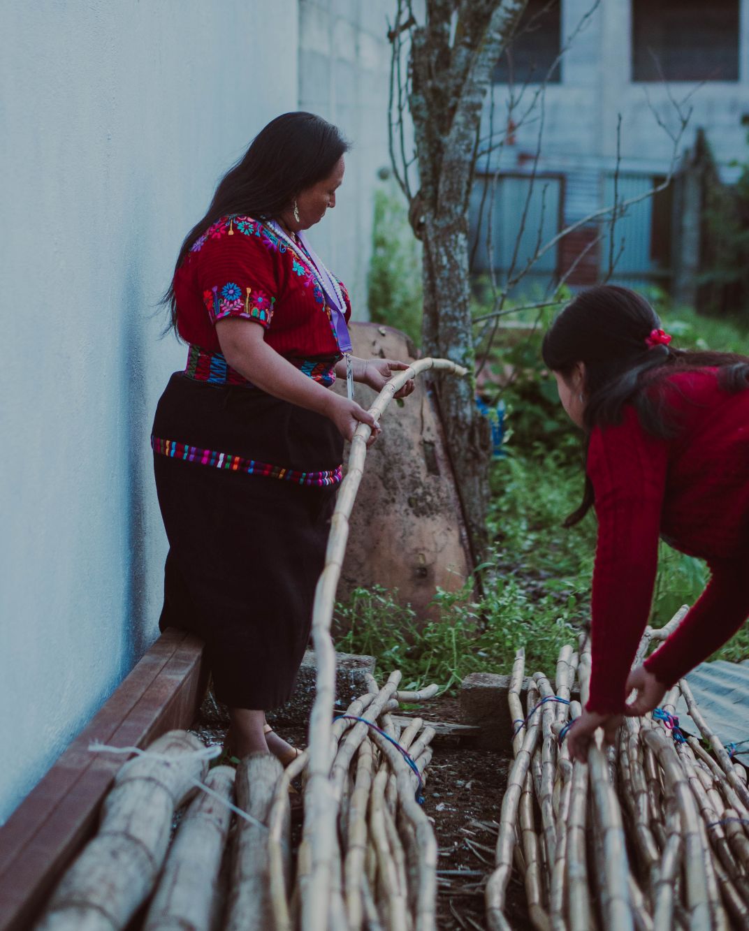 Cuando llego, el ambiente está alegre, el sonido del papel de china se mezcla con risas y con el golpeteo de las tijeras sobre la mesa. Son jóvenes mujeres de diversas edades, todas concentradas en recortar, pegar y encajar figuras de colores. La más joven, Katerin Xicón, apenas tiene trece años y sostiene múltiples pedazos de papel china. Al fondo, Marisol, la hija mayor de Sara, dirige el trabajo con paciencia. El olor a café recién hecho llena el cuarto. Entre costales de papel y cañas de carrizo y bambú, las Orquídeas dan forma al barrilete que pronto verán volar.