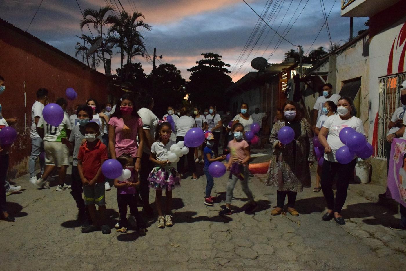 Vestidas con playeras blancas y con globos violeta, niñas, mujeres, jóvenes y familias completas acompañaron a la familia de Litzy en un pequeño recorrido que salió de la casa donde ella vivía. Gritaron las consignas “Ni una más” y “Justicia por Litzy” y colocaron velas en un altar que su familia preparó.