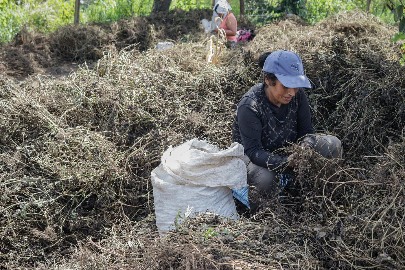 Luego de unos meses llega la gran labor: la cosecha. La manía no se recolecta como otros cultivos que se cortan o cosechan en bloque. Aquí, cada mata se arranca manualmente, se sacude para separar la manía, y se deja secar al sol. “Esto es lo que más cuesta”, dijo Arturo, refiriéndose a la destreza y tiempo que implica esta etapa.