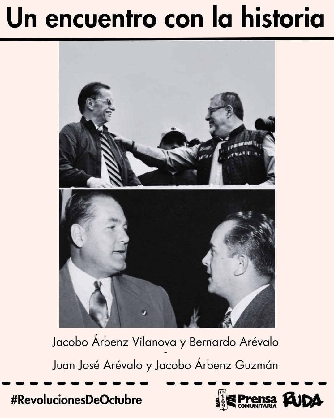 Una de las imágenes que dejaron marca en la conmemoración del 20 de octubre de este año, fue cuando el presidente electo, Bernardo Arévalo tuvo un encuentro con Jacobo Árbenz Guzmán Vilanova (hijo), ese día se cumplían 19 días de Paro Nacional Indefinido.