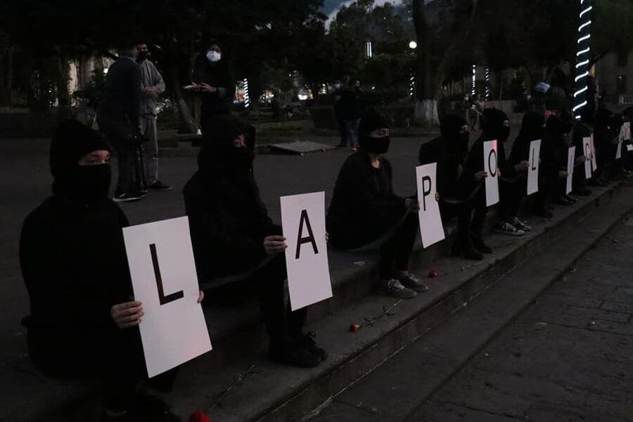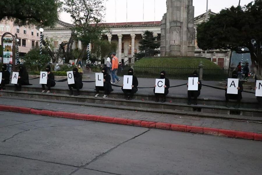 En Quetzaltenango, distintas colectivas hicieron acciones. De negro y en silencio, al menos 50 mujeres se reunieron en el Parque Central de Xela portando carteles con letras que formaron la frase “la policía no me cuida, me cuidan mis amigas” y “alzo mi voz por las desaparecidas”, como pronunciamiento por la violencia patriarcal a mujeres.