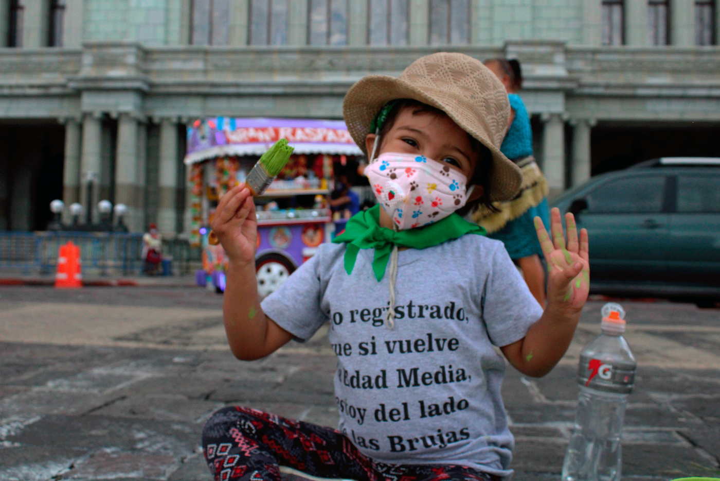 En Guatemala según la Coordinadora Institucional de Promoción por los Derechos de la Niñez -CIPRODENI-, de enero a julio de 2020, 2,2289 niñas de 10 a 14 años quedaron embarazadas por violación, pues según el Código Penal en Guatemala, se considera una violación cuando una niña es menor a 14 años. Ante estos datos, a las 10 de la mañana empezaron a hacerse presentes algunas mujeres en la Plaza de las Niñas, una de ellas portaba en los hombros un cartel con un mensaje muy claro y fuerte: