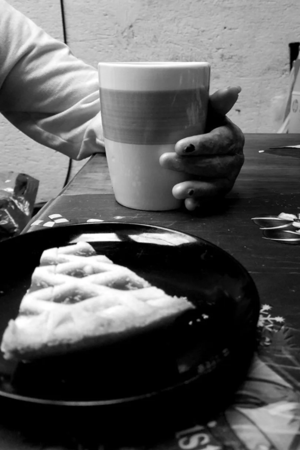 Alma interrumpe el relato por un momento, lleva un pedazo de pay de mango y un café. Mientras tanto, la cotidianidad continúa por un par de horas más. Alma barre la casa, las niñas arreglan su ropa, le tiran comida a unos pollos que tienen en la parte de atrás de la casa.