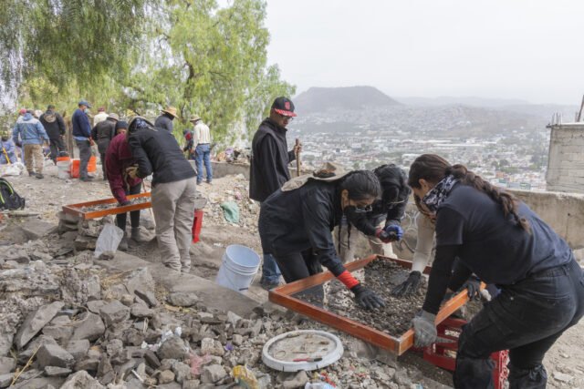 Las jornadas consisten en continuar cavando agujeros de 1.5 metros de diámetro hasta encontrar suelo sólido, tarea que realizan principalmente bomberos y personal de las fiscalías. Lo que extraen es llevado a una hilera de coladeras donde las familias y peritos buscan cualquier resto óseo.