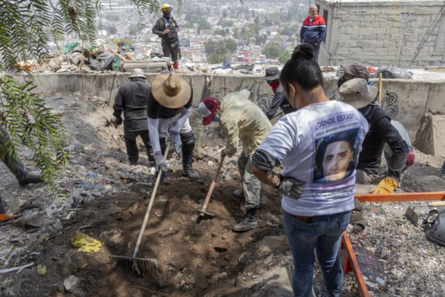 Está vez la Brigada Humanitaria Marabunta ha dejado las playeras rojas que los distinguen mientras contienen la violencia en las marchas. Hoy visten playeras café claro que oculta la tierra que los baña mientras rascan en los hoyos de basura arrancando ropa y zapatos que podrían significar alguna pista.