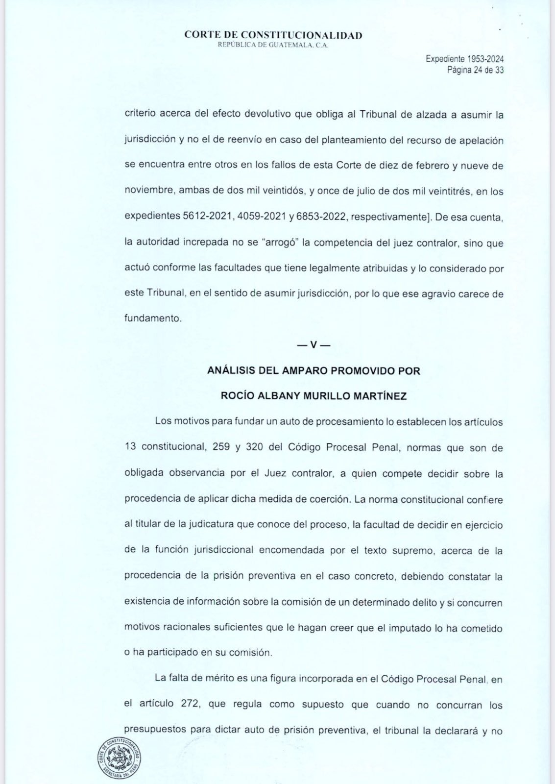 La Corte de Constitucionalidad (CC) negó una apelación solicitada por la jueza Rocío Murillo, que buscaba anular el proceso en su contra por no haber practicado una exhibición personal a favor de las internas del Hogar Seguro un día antes del incendio que cobraría la vida de 41 menores y que dejó lesiones gravísimas a otras 15.
