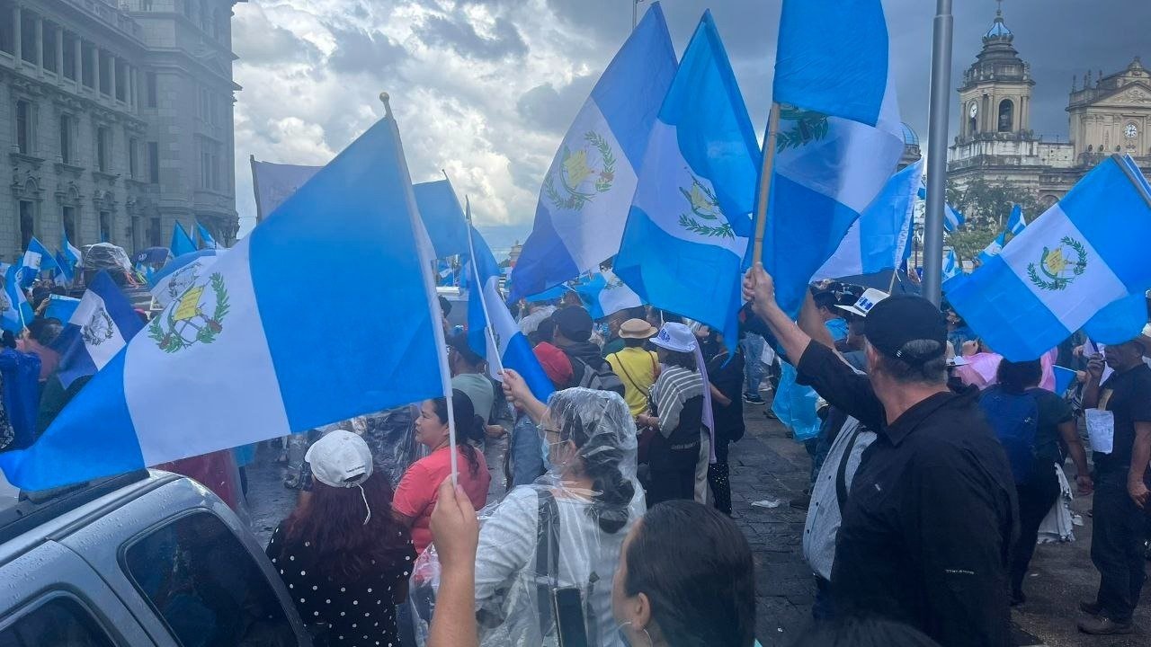 La Plaza, en el Centro Histórico capitalino, se fue llenando de familias con carteles, mantas, banderas de Guatemala, vuvuzelas y el reclamo ciudadano contra la incertidumbre en el proceso electoral, además del respaldo y al binomio presidencial electo.
