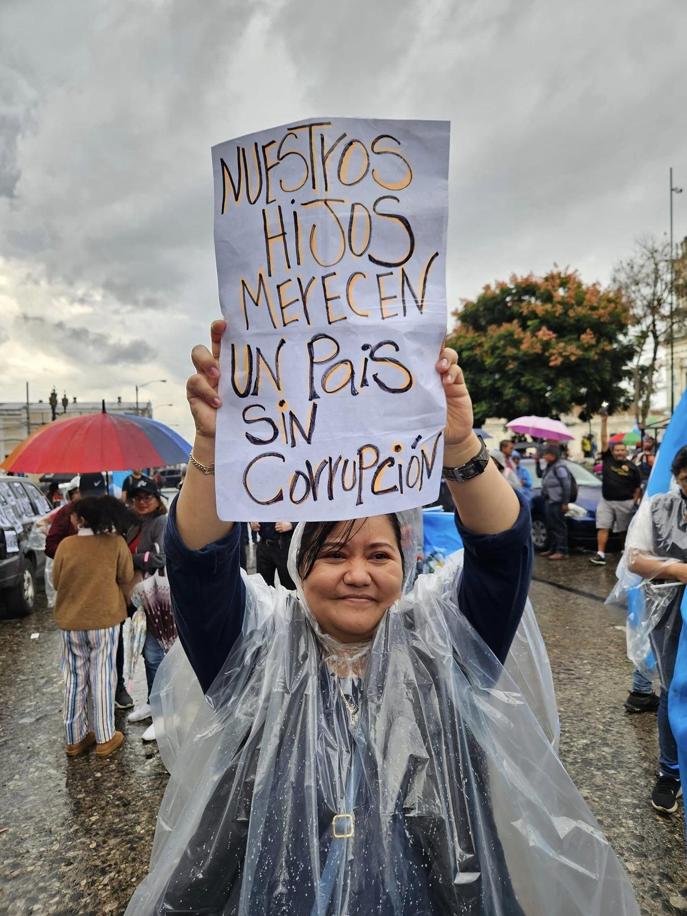Las y los manifestantes se concentraron en La Plaza las Niñas en el Centro Histórico, y la lluvia no impidió que familias completas se manifestaran exigiendo la renuncia de los funcionarios del MP y del juez Orellana.