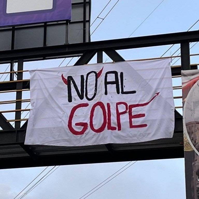 Este lunes, en diversos puntos de la ciudad capital se observaron mantas en las pasarelas con el mensaje: “No al golpe”, “No a la dictadura”, “Curruchiche traidor”y “Consuelo Corrupta”.