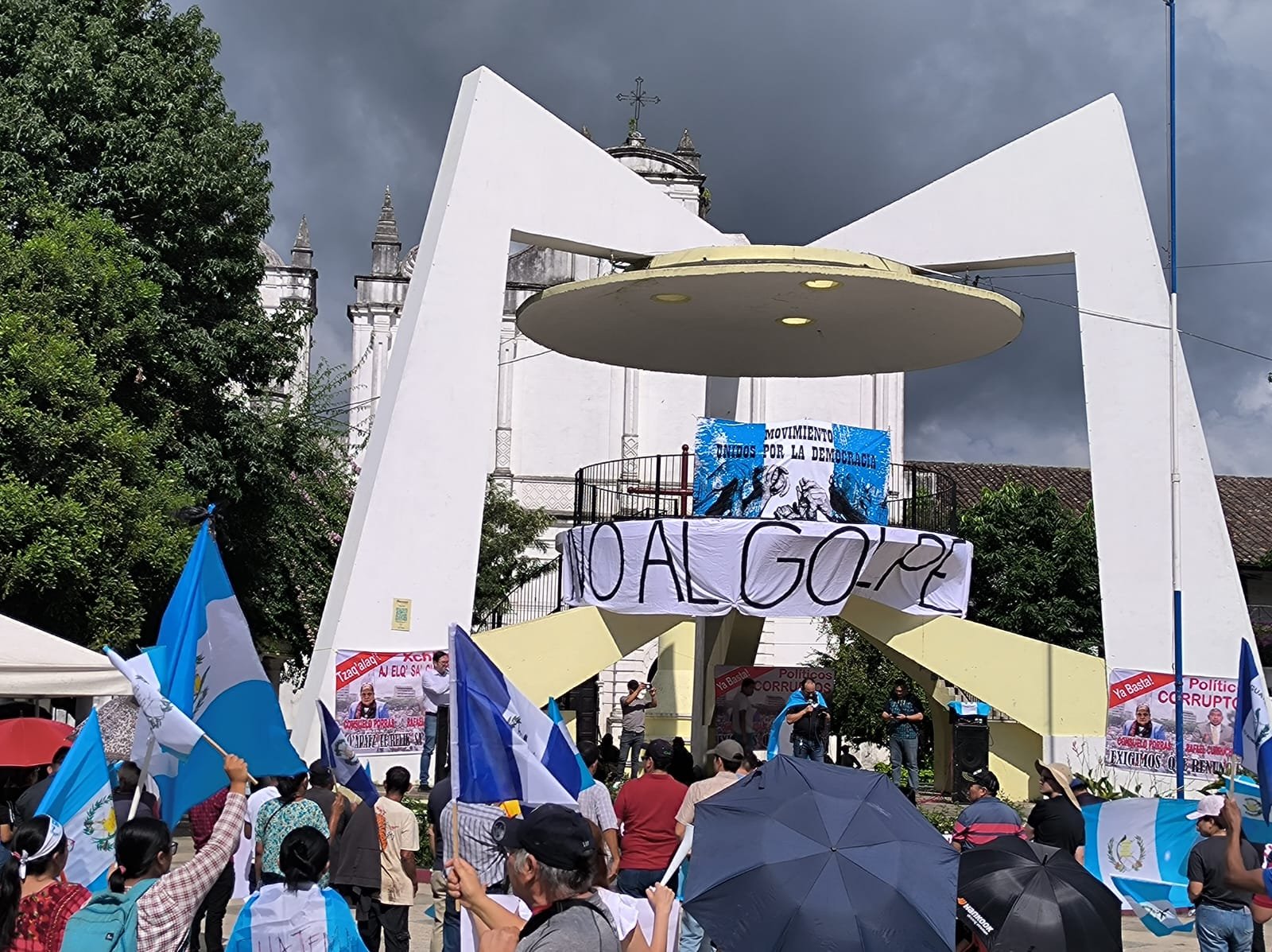 En la ciudad colonial, Antigua Guatemala, en Sacatepéquez, también se concentraron a manifestar a favor de la democracia del país. La protesta se centró frente a la sede del Miniterio Público y también utilizaron carteles con mensajes en contra del Golpe de Estado fraguado por la Fiscal General.