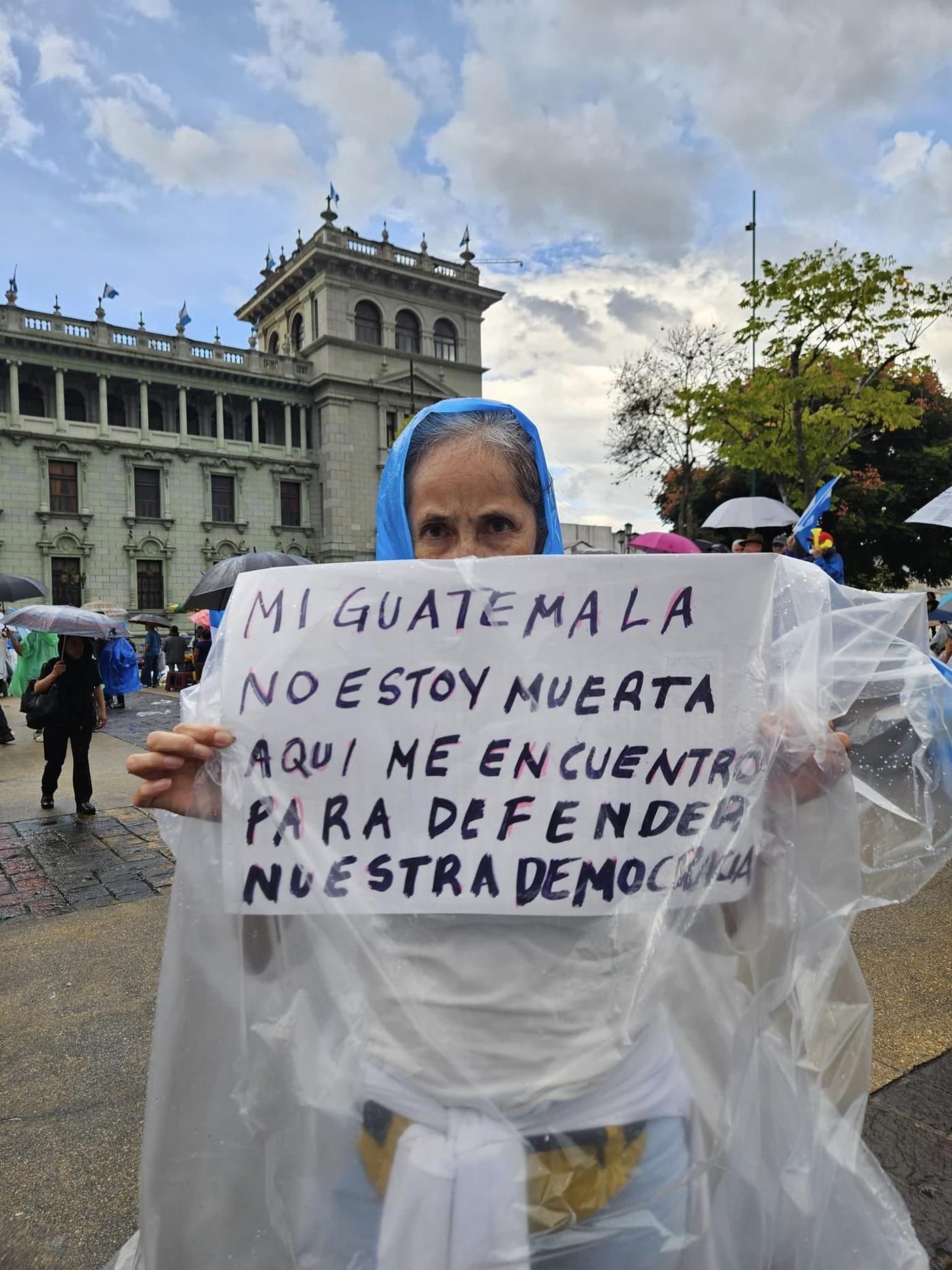 Cecilia Ochoa, una de las manifestantes en la Plaza de las Niñas, pidió “justicia para el pueblo de Guatemala, por eso estamos aquí, por nuestros hijos”, aseguró.