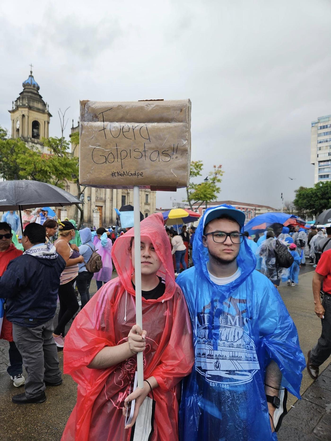 Además el colectivo del que formó parte Sara, también portó diversas consignas entre ellas un cartel con la fotografía de Consuelo Porras que decía: “La Fiera está herida, enemigo #1 de la Nación”, otros carteles decían: “Unidos por la democracia #RespetenMiVoto”, “El pueblo te necesita, no nos des la espalda, entre otros mensajes.