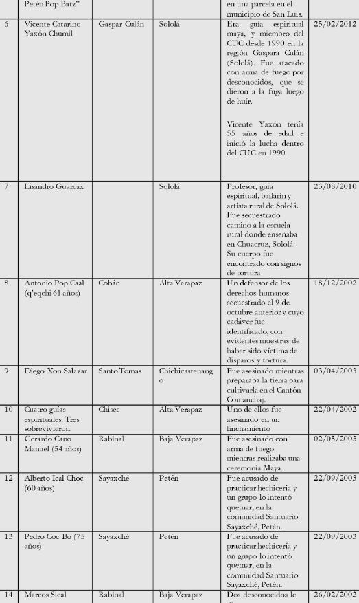 Esta mirada sobre los pueblos indígenas, su cosmovisión maya, espiritualidad y la medicina han sido causantes de crímenes, en este caso contra terapeutas y guías espirituales, por lo que el debate sobre racismo y discriminación sigue abierto. Hicimos un registro de al menos 20 de ellos que han sido asesinados en los últimos 16 años.