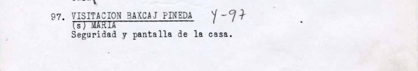 14. Visitación Baxcaj Pineda: Señalada de ser seguridad y pantalla de una casa donde se realizaban reuniones de la insurgencia. No refiere fecha de captura.