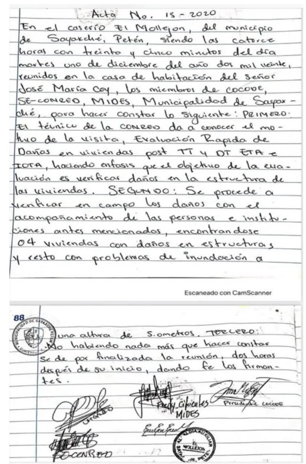 “Aquí estamos abandonados. Vivimos como Dios nos ayude cuando vienen las inundaciones. Cuando ya pasó todo vienen las autoridades a ver. Por qué no vienen cuando está la necesidad. Ellos dicen: nosotros apoyamos a las comunidades. Son mentiras, señores. Me gusta escuchar las noticias, al presidente Giammattei dice: nosotros estamos apoyando a las comunidades afectadas, pero ¿Dónde están? Cuando necesitan los votos allí están. Necesitamos ayuda para nuestra comunidad y dicen que gastarán tantos millones, pero ¿Dónde están? En sus bolsillos. No sean así”.