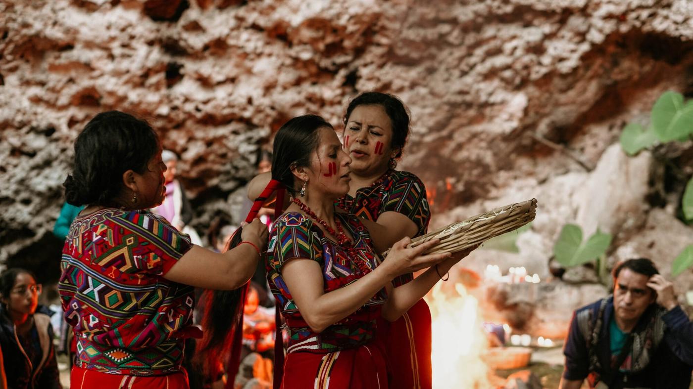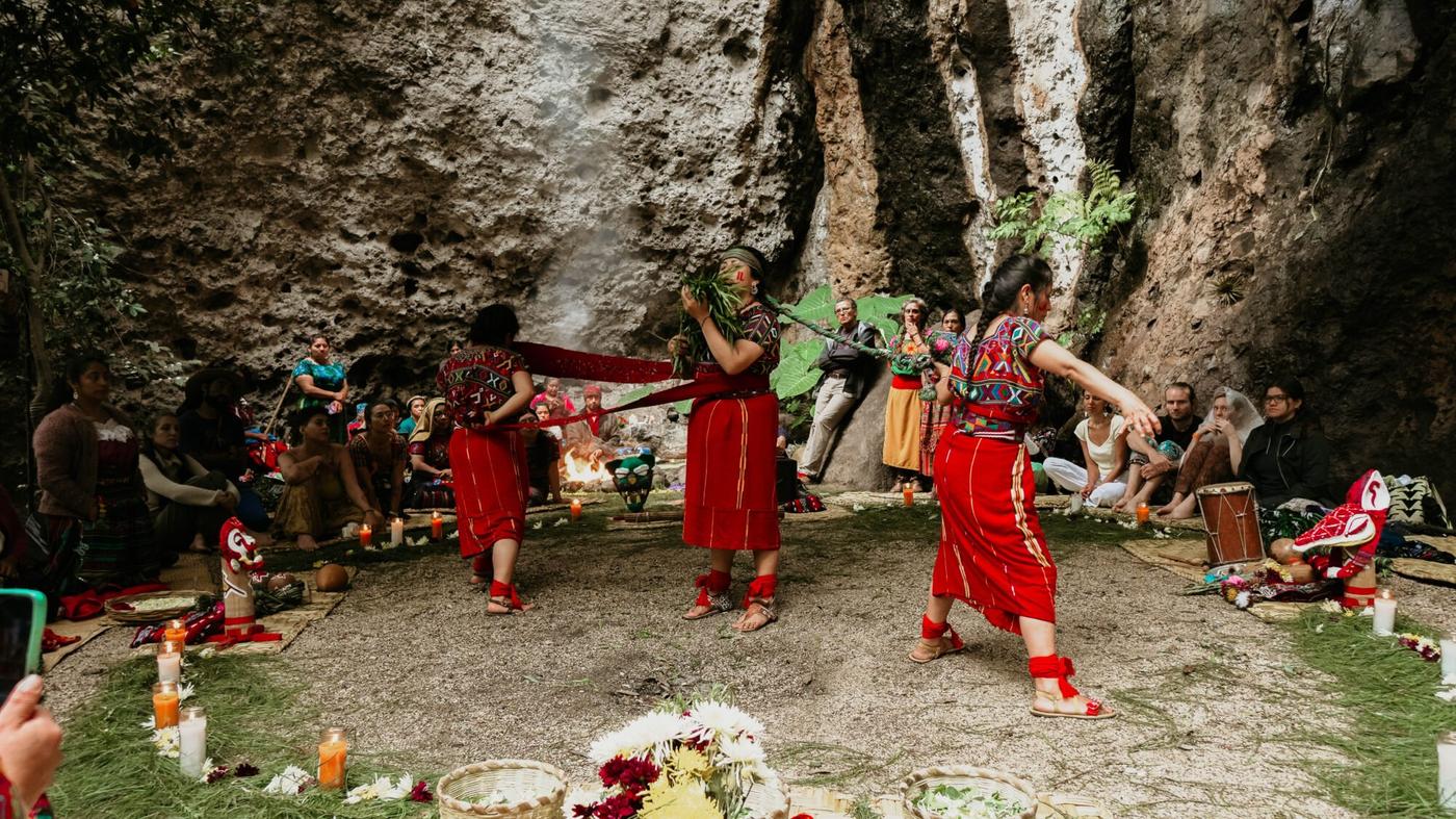 En el sitio sagrado Nima’laj Ab’aj, ubicado en San Marcos la Laguna, Sololá, comadronas y contadoras del tiempo de los pueblos maya Mam, K’iche’ y Kaqchikel fueron protagonistas del solsticio de verano que coincidió con el 4 Kawoq, que representa la energía femenina, el vientre, tuj (temazcal), unión de la comunidad, la montaña, energía de la lluvia, la curandera y el nawal de las parteras.