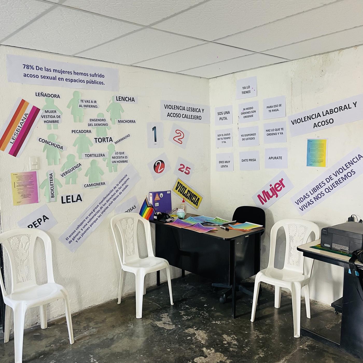 “CREAR es una organización que abraza la lucha feminista porque en Escuintla no hay un espacio de y para las compañeras, entonces ellas también se han apropiado del espacio para visibilizar sus luchas. Nos acompañamos entre todas y todes”, compartió Misael.