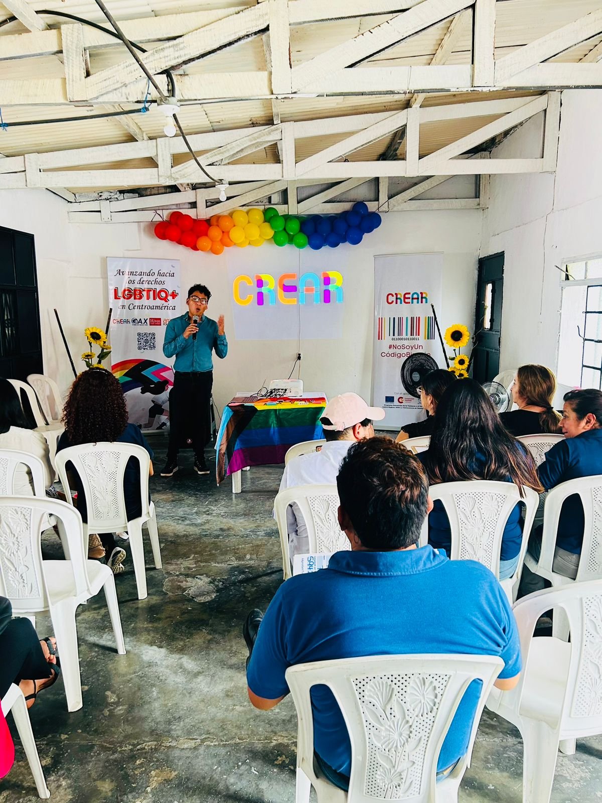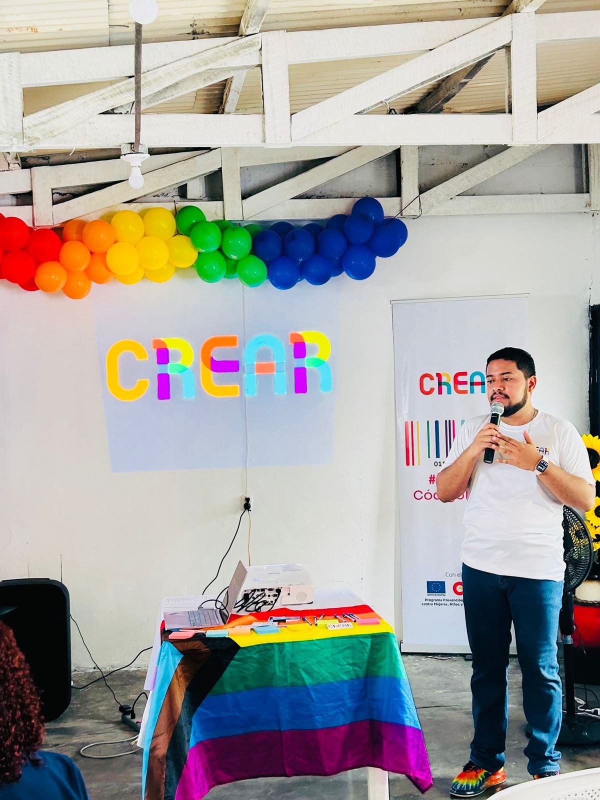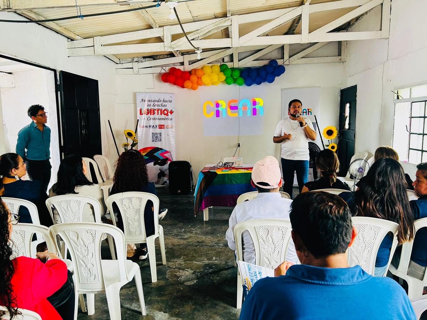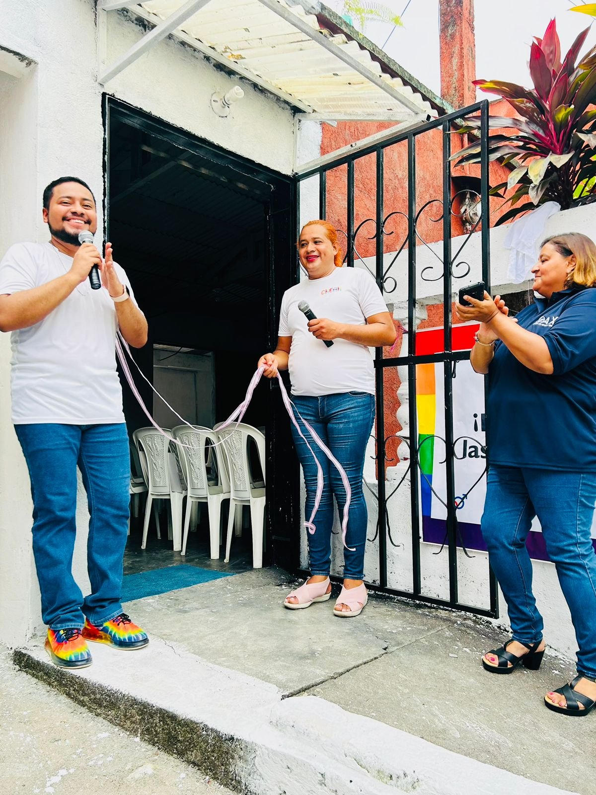 En la casa CREAR, en Escuintla, se habilitó el espacio del Centro Cultural de Escuintla. “No se nos ha permitido hacer actividades culturales en la Casa de la Cultura, entonces esta casa también representa un espacio cultural, un espacio para artistas que se nombran desde el activismo, que se nombran desde las artes diferentes que no entran dentro de los cánones de lo que se espera que sea un artista para esta sociedad capitalista, entonces va a ser un espacio artístico donde las personas podrán venir y compartir su arte, su talento, sus ideas, compartirlas con las demás personas. También esperamos que acá no solo sean oficinas, por eso la nombramos como Casa CREAR porque más allá de oficinas, es un una casa, un espacio libre de violencia, de estigma, de discriminación, es un espacio que quiere abrazar a las personas, que quiere brindarles este espacio no sólo para que las integrantes exploten su arte, sino para compartir arte también”, aseguró Misael.
