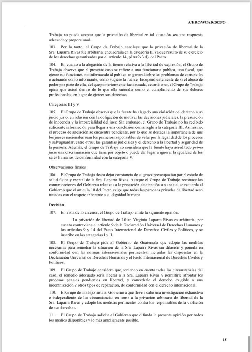 El informe lo debe realizar la Comisión Presidencial por la Paz y los Derechos Humanos (Copadeh) al Grupo de Trabajo sobre Detención Arbitraria del Consejo de Derechos Humanos de las Naciones Unidas y explicar acerca de la condición en la que se encuentra Laparra.