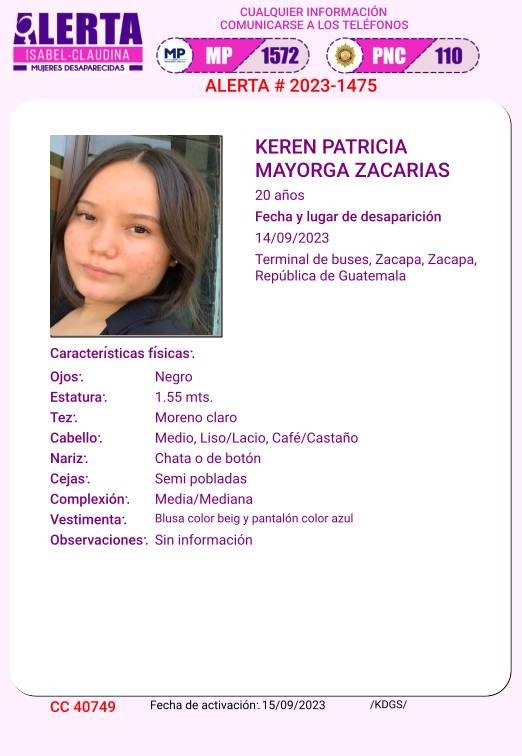 A diciembre del año 2022, 15 mujeres fueron asesinadas de forma violenta en Zacapa, una situación latente que activó las alarmas de la familia de Karen, por lo que de inmediato pusieron una alerta de desaparición de mujeres Izabel-Claudina.
