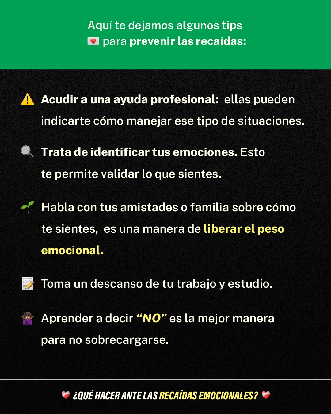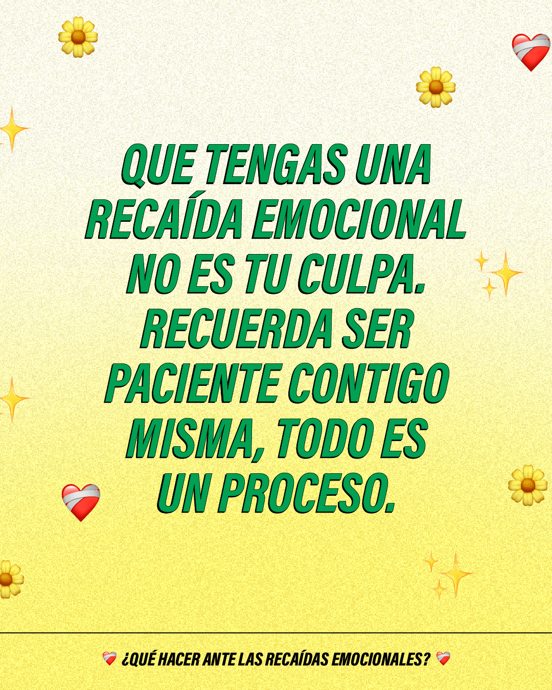 Cuerpo y Territorio ¿Qué hacer ante las recaídas emocionales? 13 Febrero 2023 Escrito por Angie Ross Salud mental Compartir Twitter Facebook Whatsapp Telegram Correo Participaron de esta nota Angie Ross 134 artículos