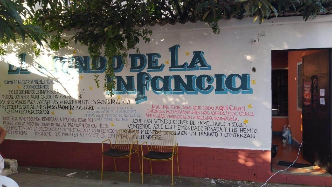 Al inicio de la intervención de los muros de su casa, varios vecinos de la comunidad pensaron que iba a ser un albergue o una guardería. Uno de los propósitos de los rótulos es llamar la atención de las personas. Edgar López, Rotulista de Mixco, enseñó a Camila el proceso para elaborar los rótulos en la pared, que también es una de formas en la cual uno puede expresar sus pensamientos.