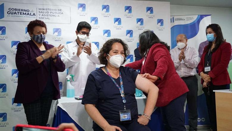 La doctora Johana Samayoa fue la primera profesional de la salud en recibir la vacuna contra la covid-19 en el Hospital Roosevelt, el pasado 25 de febrero.