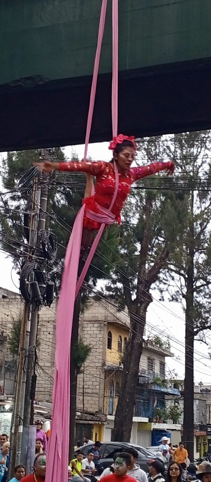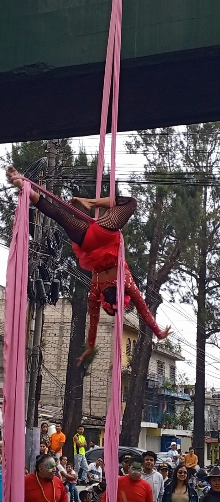 La tarde inició con un show de batucada, jóvenes en sancos y una malabarista que usó la pasarela para hacer sus acrobacias en tela.