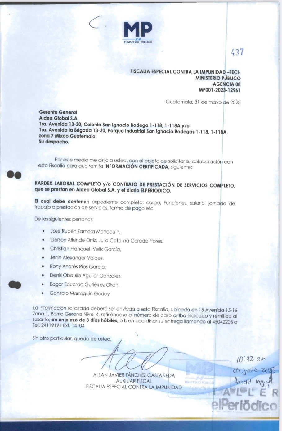 A raíz de ese fallo, la FECI, incumplió la orden del juez, Curruchiche tomó el caso y realizó diligencias de investigación contra los periodistas y columnistas. Entre estas, diligencias de investigación en la Hemeroteca Nacional; donde documentó y tomó fotografías de las publicaciones realizadas en elPeriódico.