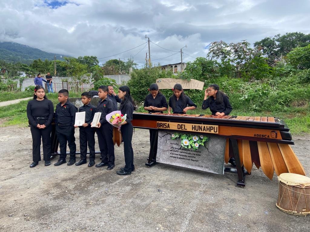 Carmen (15 años), Jackeline Rocío (14), Steven (14), Camila (11), Noemí (11), Joaquín Emanuel (10), Sofía Aracely (10), Ángel Leonardo (8) y Luis Ángel (7) son integrantes desde hace años de la marimba infantil Brisas del Hunahpú, y en esta ocasión interpretaron dos melodías: Santiaguito de Domingo Bethancourt al ritmo de Foxtrot y el son el Sembrador del autor Lester Godínez.