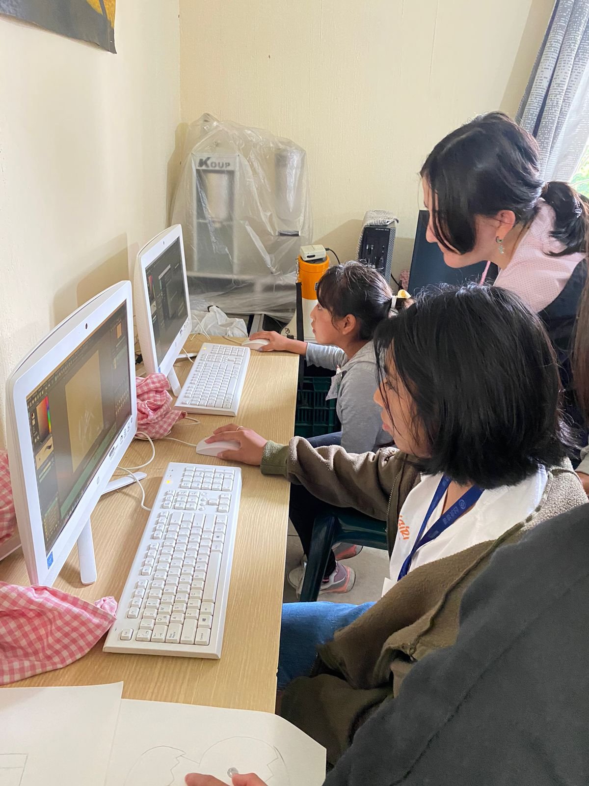 El taller de ilustración estuvo a cargo de la ilustradora y comunicadora Jasmin López. Tomaron una hoja y lápiz para dibujar el objeto o animal que les llamara la atención, para luego pasar la imagen a la computadora y realizar distintos trazos, colores y formas. La habilidad de ilustrar se hizo notar cuando algunas hicieron trazos más elaborados.
