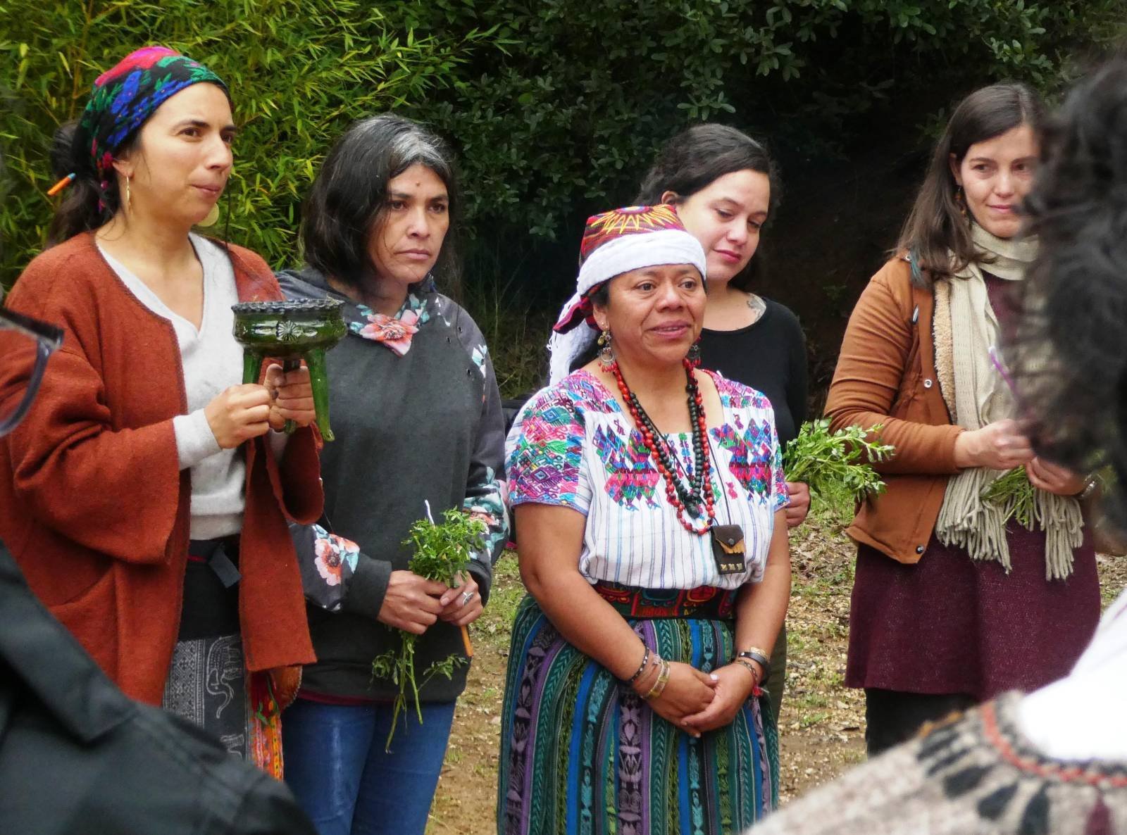 Las actividades empezaron esa tarde en las instalaciones del CIDECI, espacio autónomo de larga tradición en esta ciudad, donde Lolita nos recibió –sí, ella a nosotros- con una ceremonia maya que condujo con el apoyo de otras tres mujeres guías espirituales: dos oaxaqueñas, un norteña y una kurda. Alrededor del fuego, cada asistente fue depositando símbolos, banderas, fotografías y ofrendas que Lolita supo ir llenando de sentido en su quehacer.